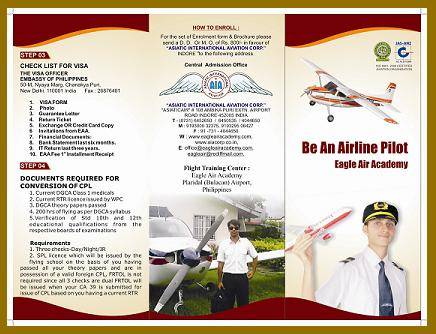 2. When you are satisfied and have decided to enroll, fill out the to Eagle Air Academy Overseas Student Enrollment Form, with as many detail as possible. Send this forms and form and then send the original with a Demand Draft of Rs.10,000/- to Asiatic International Aviation Corp. Foreign Students [ Non Indians ] make an International Demand Draft of US$ 250.